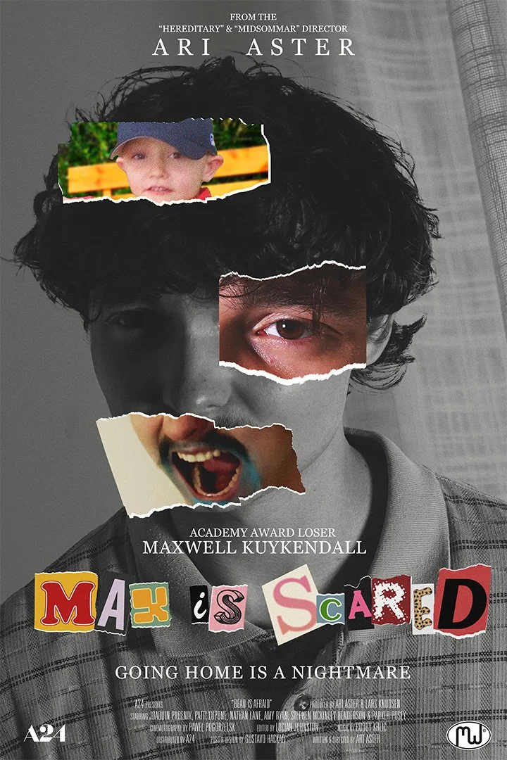 For my Beau Is Afraid poster, I intentionally chose a design approach that differed from my Fear and Loathing recreation. Rather than relying heavily on photo manipulation, this poster required a larger volume of photographic and typographic assets.