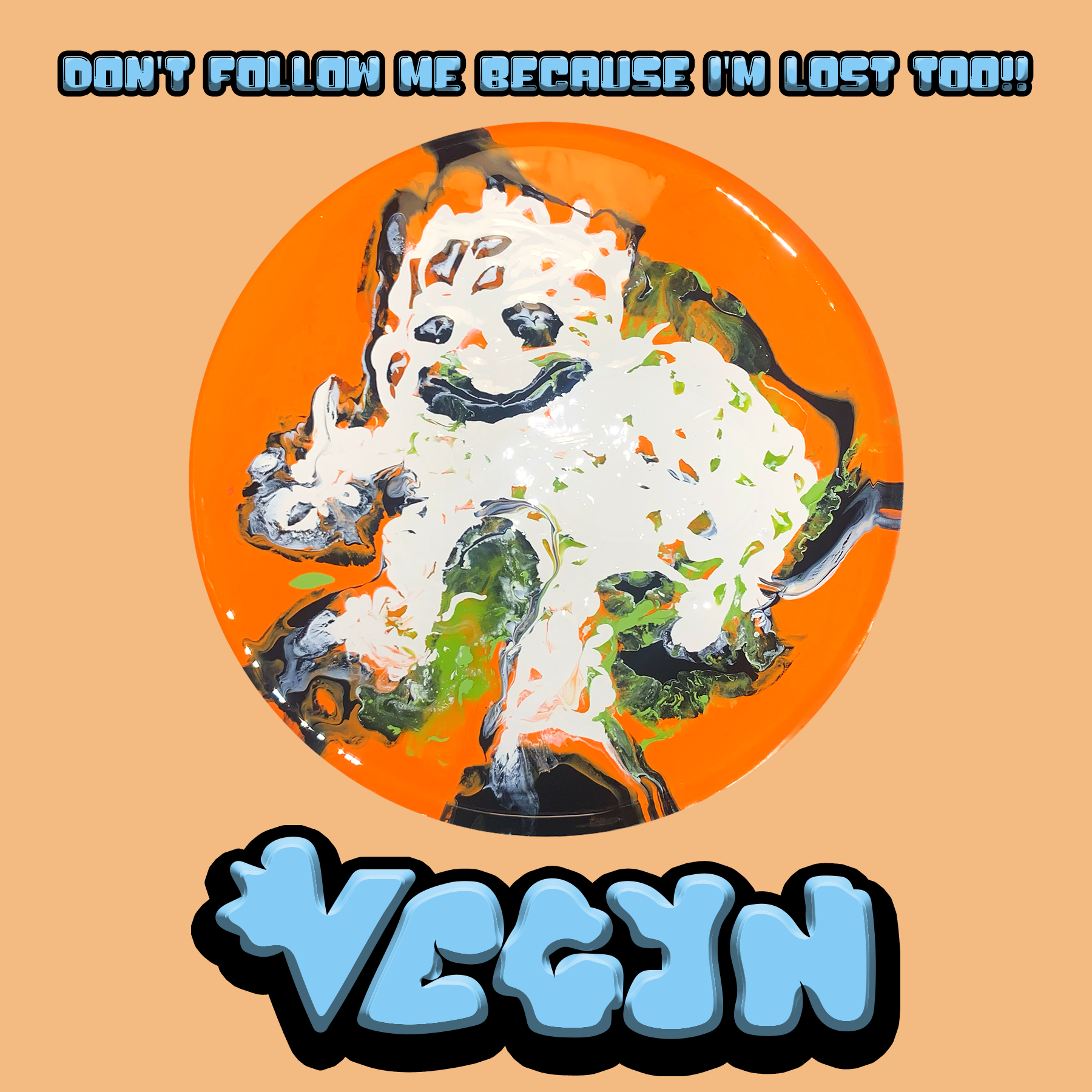 For my interpretation of Vegyn’s album cover, I again worked with physical media to create a tactile, hands-on result. Using a pouring technique with heavy amounts of paint on a ceramic plate, I reinterpreted the character from the original cover in a fluid, glossy form.