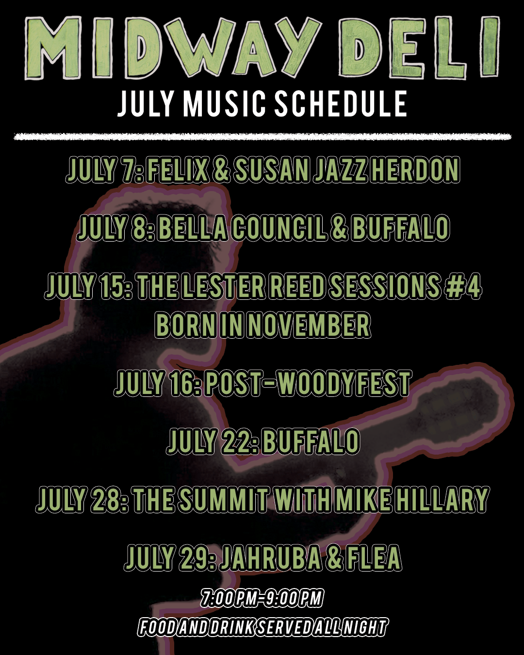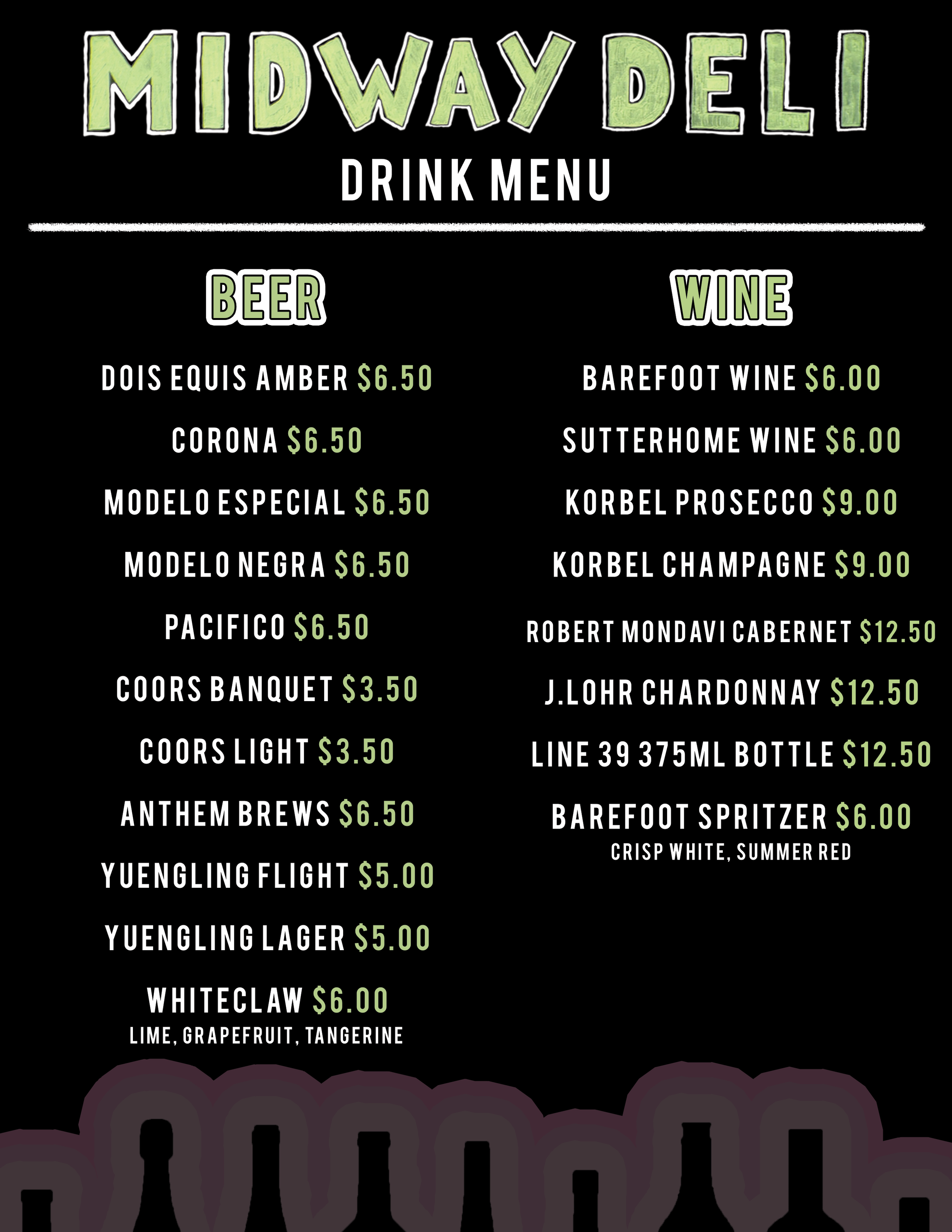 Midway Deli Drink Menu & Music Schedule